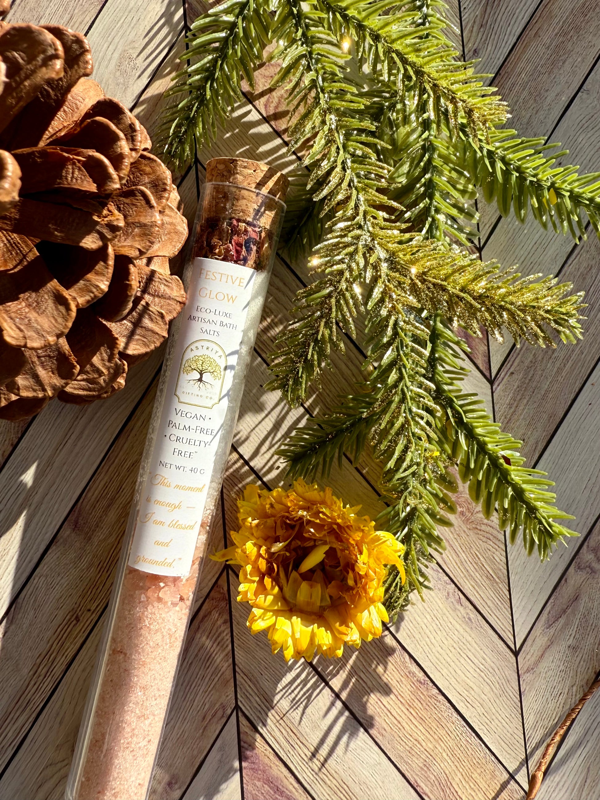 The Festive Glow Wellness Box is designed to bring the scent, warmth, and comfort of the holidays into a quiet self-care ritual.