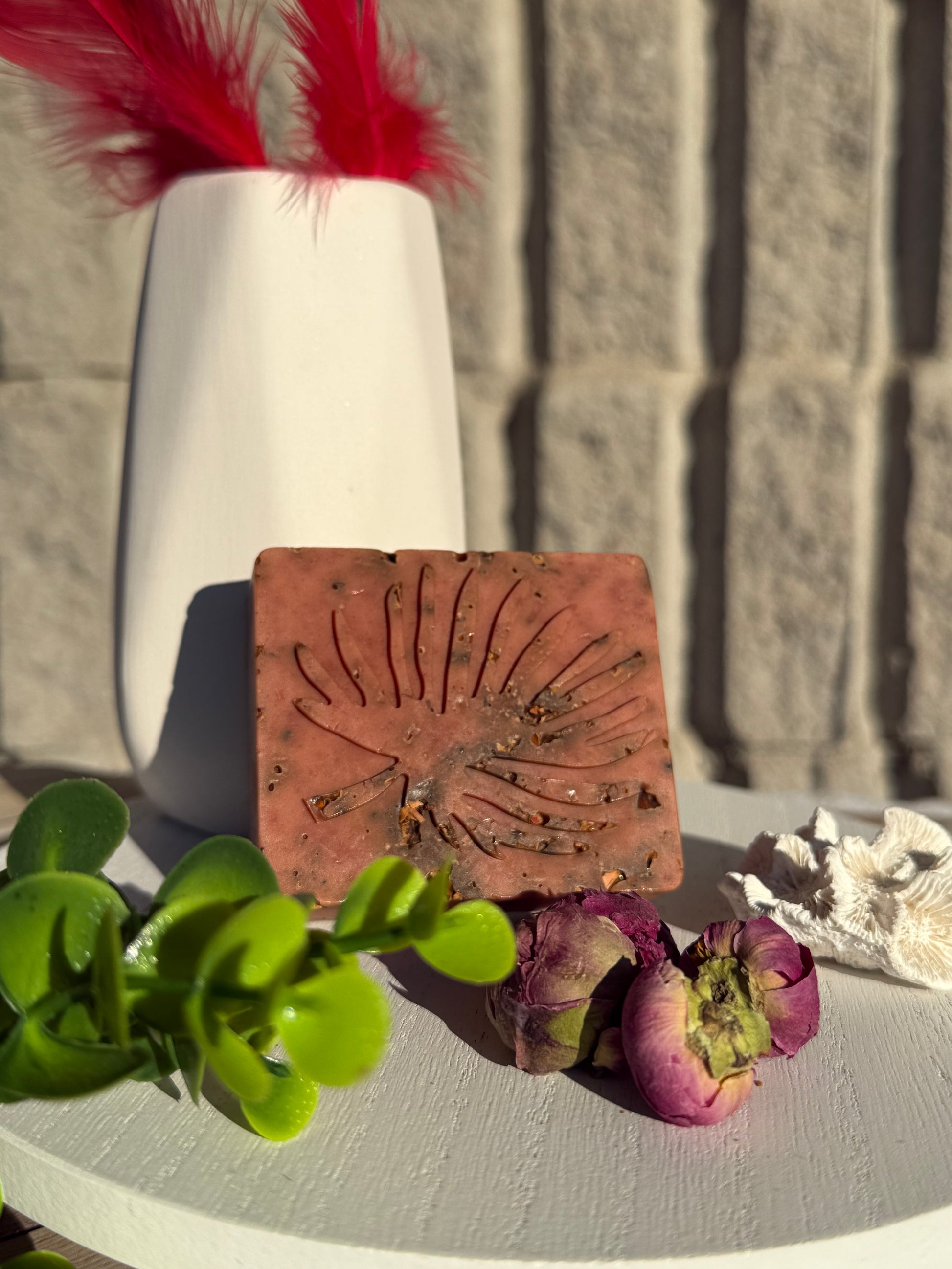Nourishing shea-based bar with rose clay, rose petals, and gentle botanicals for a silky, skin-loving cleanse.